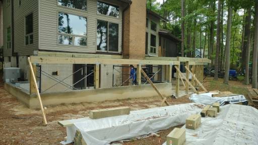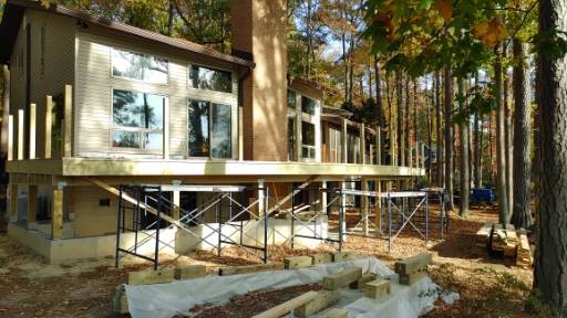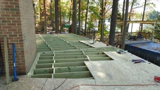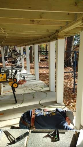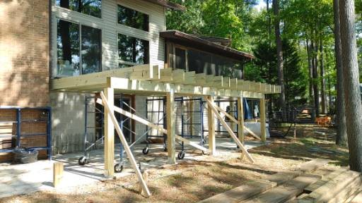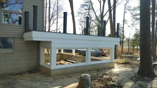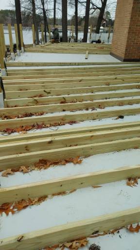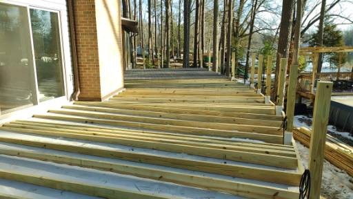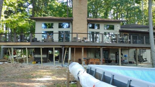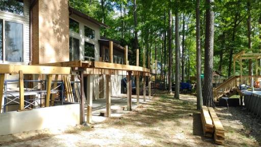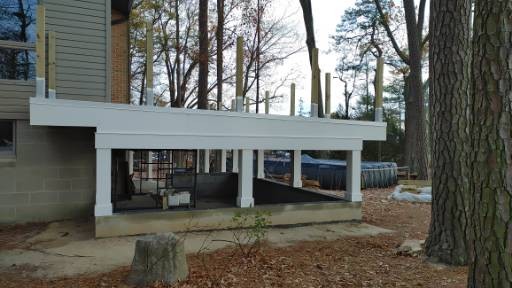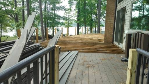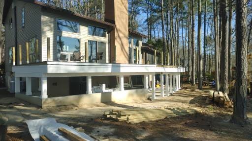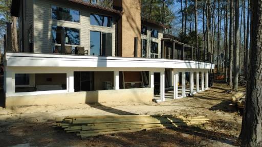 For this project in Queenstown, Maryland, our team completed a full tear-down and replacement of an elevated deck that was experiencing structural issues. The existing deck was carefully removed and rebuilt from the ground up, beginning with new 6×6 pressure-treated support posts and 2×12 pressure-treated joist headers and framing to create a strong, stable foundation.